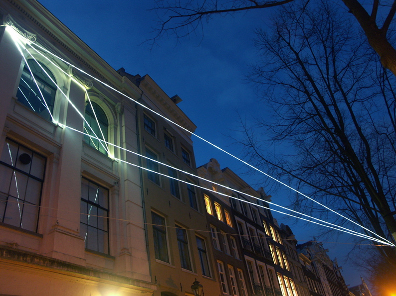 Carlo Bernardini, The Light that Generates Space 2010, installazione ambientale in fibre ottiche, mt h da terra 15x15x10; NIMk - Netherlands Media Art Institute, Sonic Acts, The poetics of space, Amsterdam.